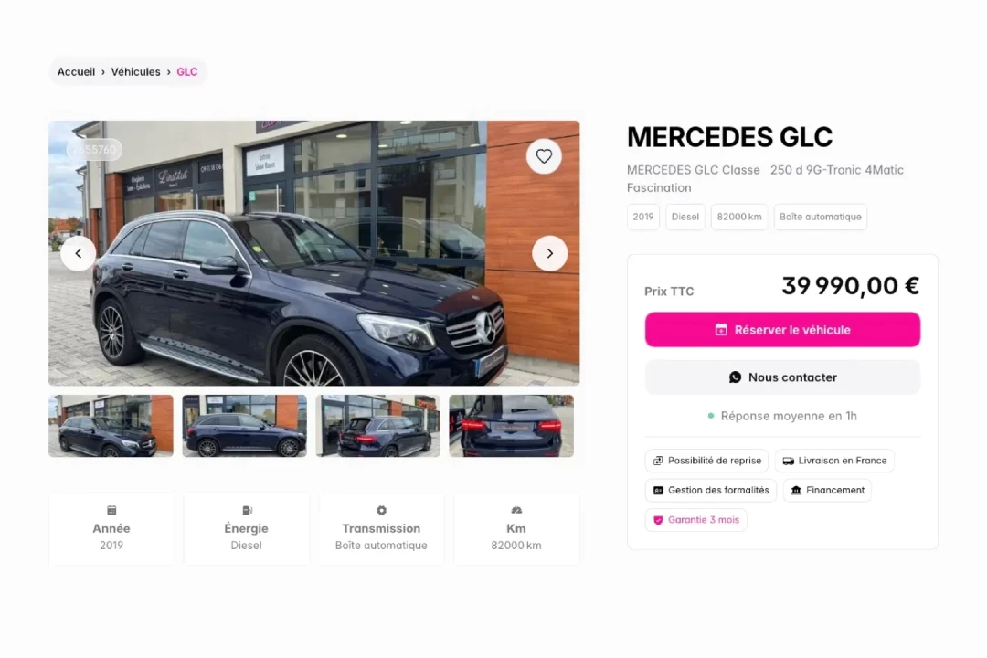 Filtrage UX optimisé : recherche par budget, type de véhicule ou kilométrage en quelques clics seulement.